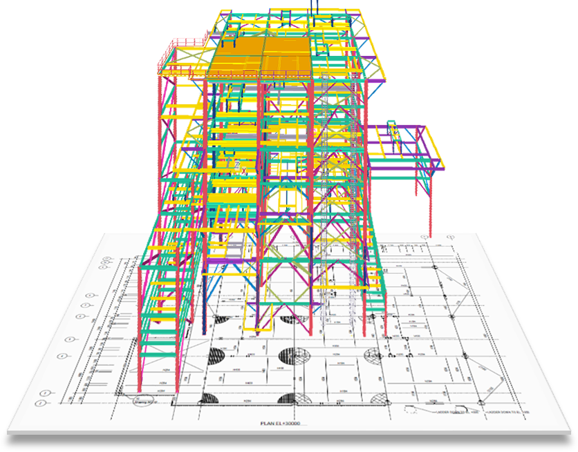 3D구조모델링 정보를 이용하여 구조도면의 자동생성 및 편집을 지원합니다.